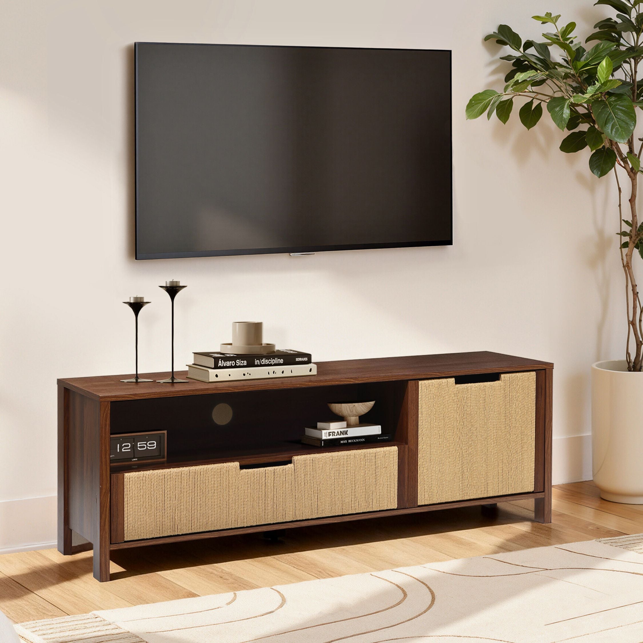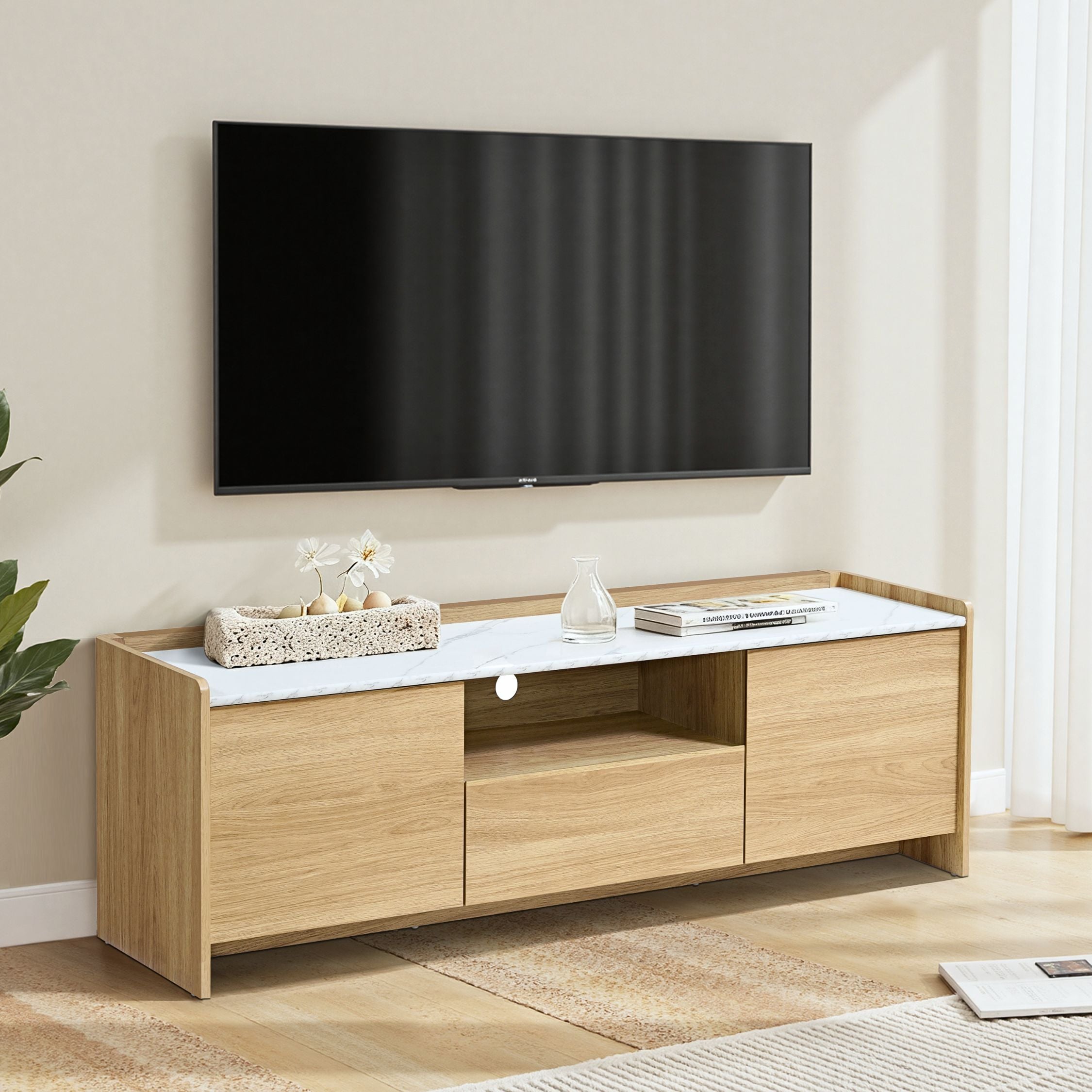 Match Your Interior Style: Choose a design that complements your existing décor. Mid-century modern options like the Tambour Style 2-Door TV Stand work well in vintage-inspired spaces, while light oak finishes suit contemporary and Scandinavian themes.