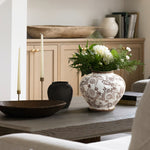 Brown Floral Wide-Mouth Round Waterproof Ceramic Vase, 8.5"