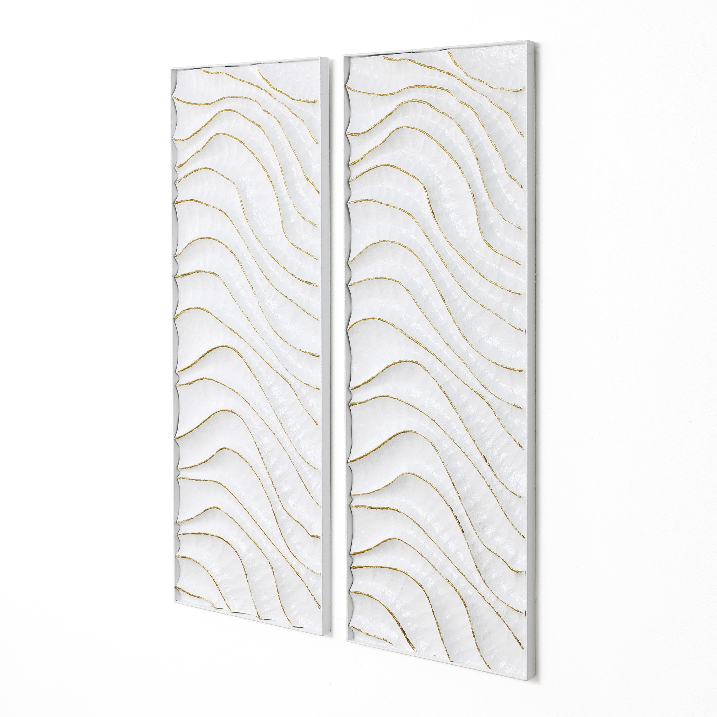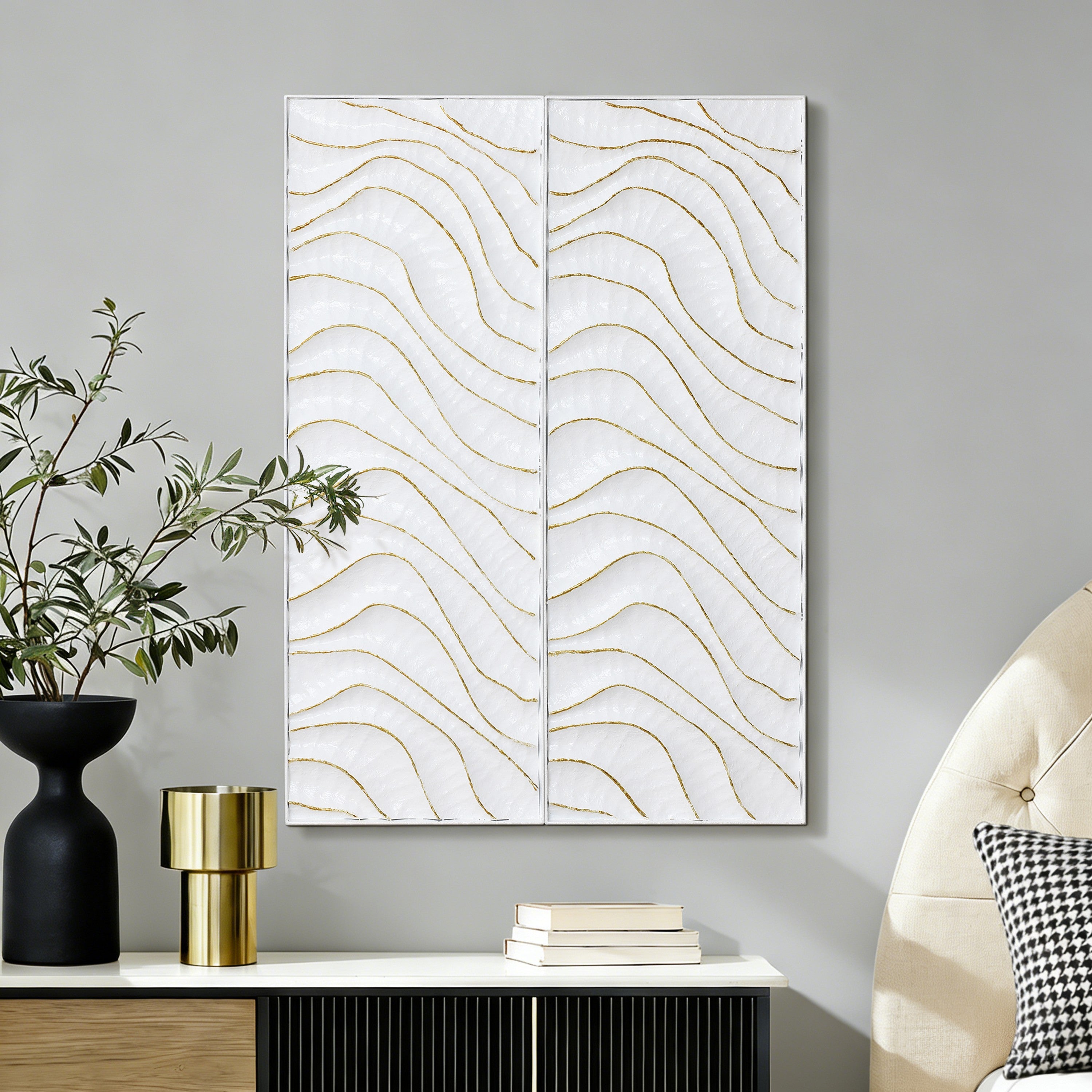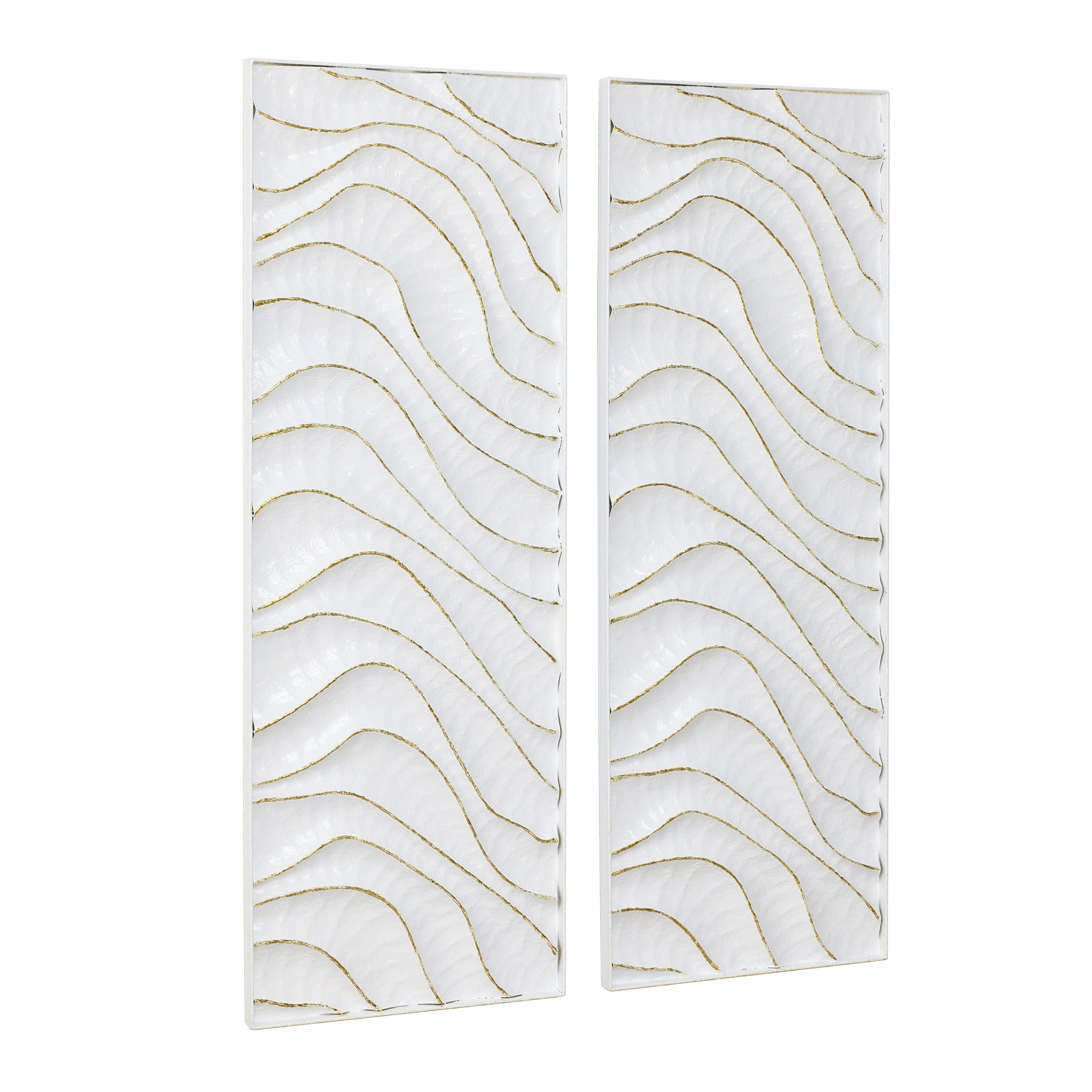 White Metal Wall Decor with Gold Wave Accents, Set of 2, 39.5'' H