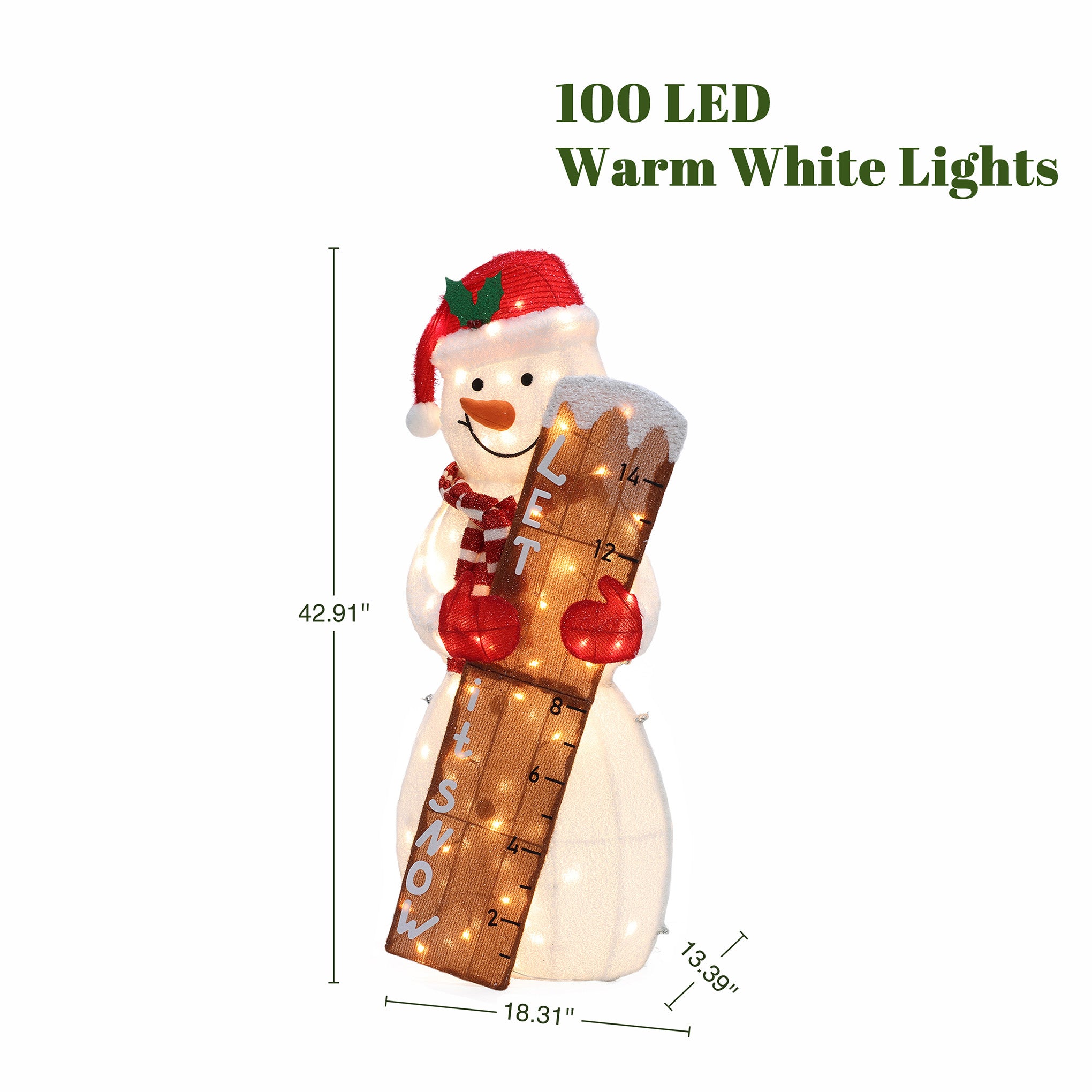 Crafted with a metal frame and plush polyester covering, this snowman offers both durability and charm. Illuminated by 100 warm white LED beads for nighttime magic. Weather-resistant and plug-in ready, setup is quick and easy.