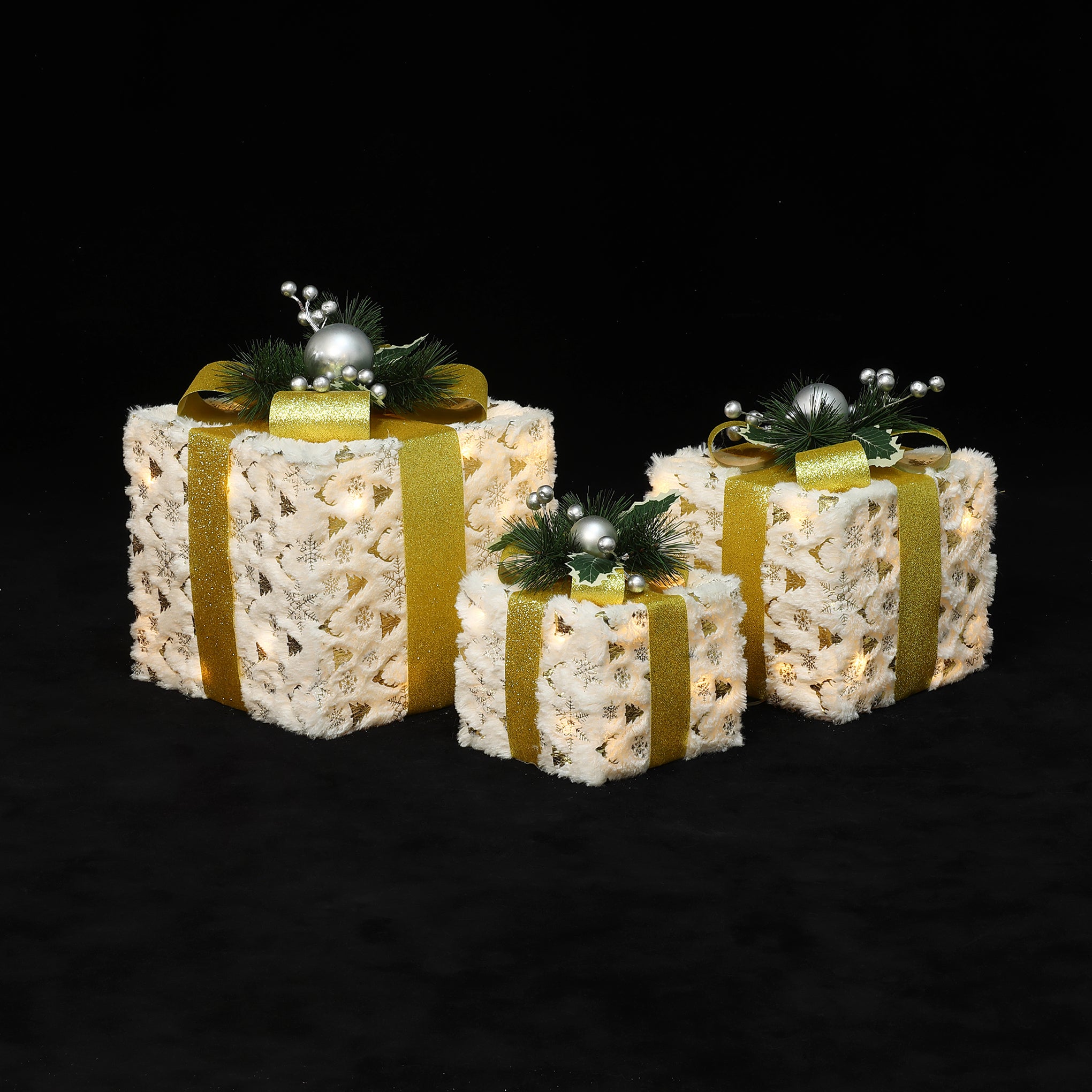 Christmas Decor Gift Boxes with Lights Outdoor - Set of 3