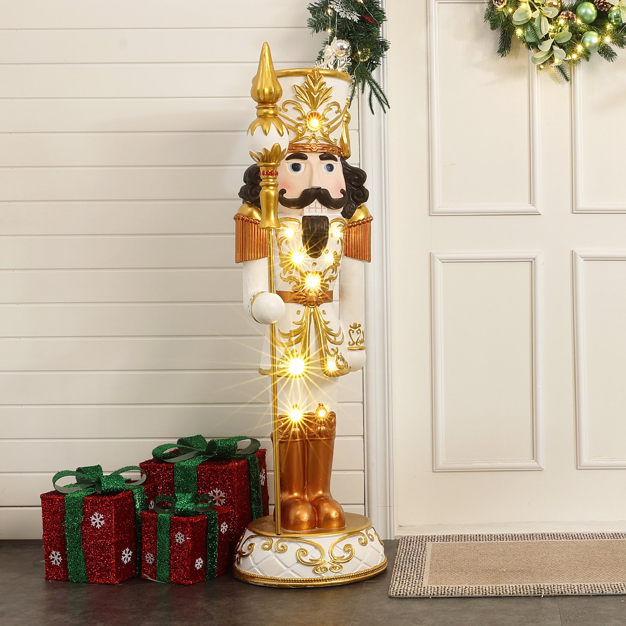 Christmas Soldier Nutcracker Decor in White & Gold with Lights, 4 ft
