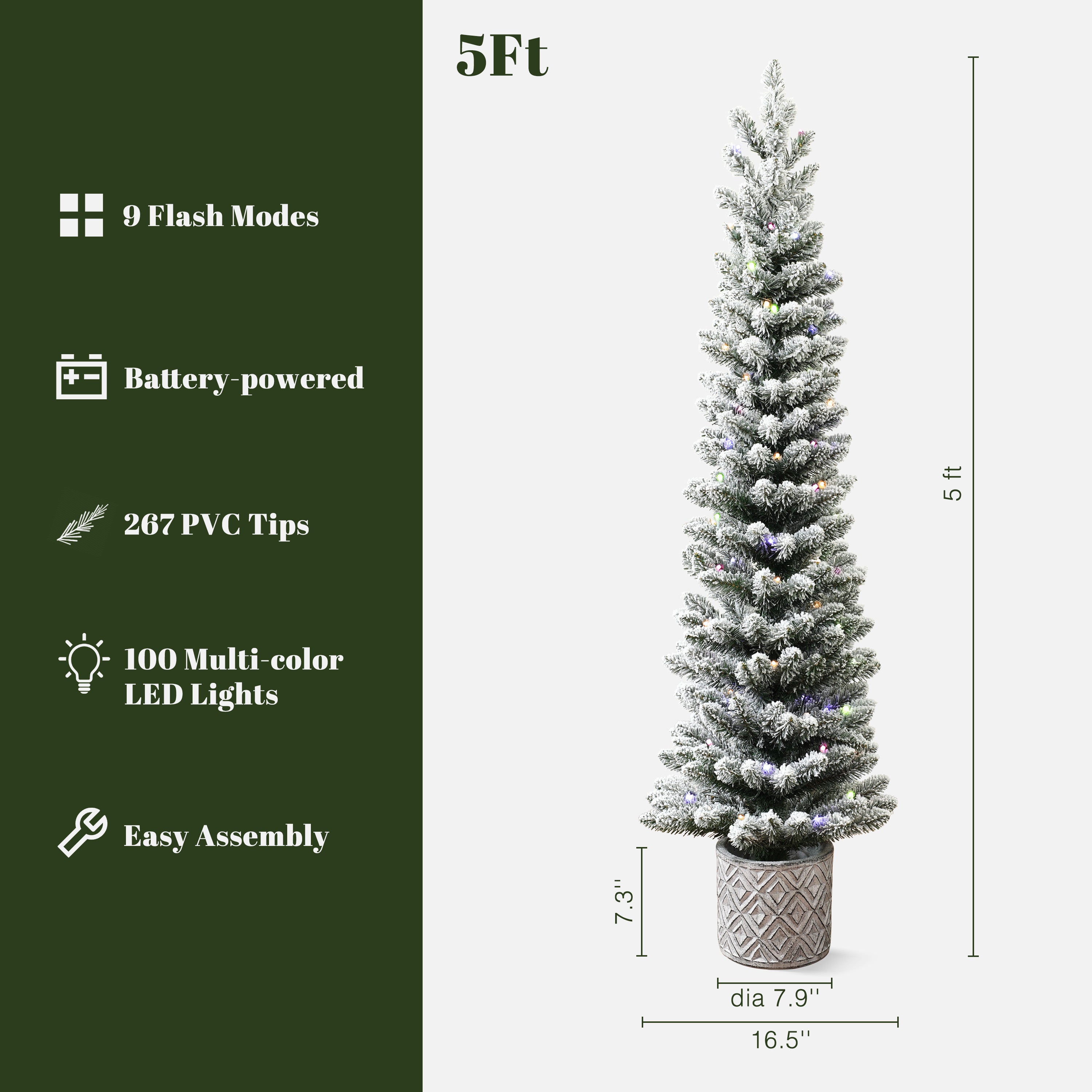 5Ft Flocked Artificial Tree Potted with Multi-Color Lights