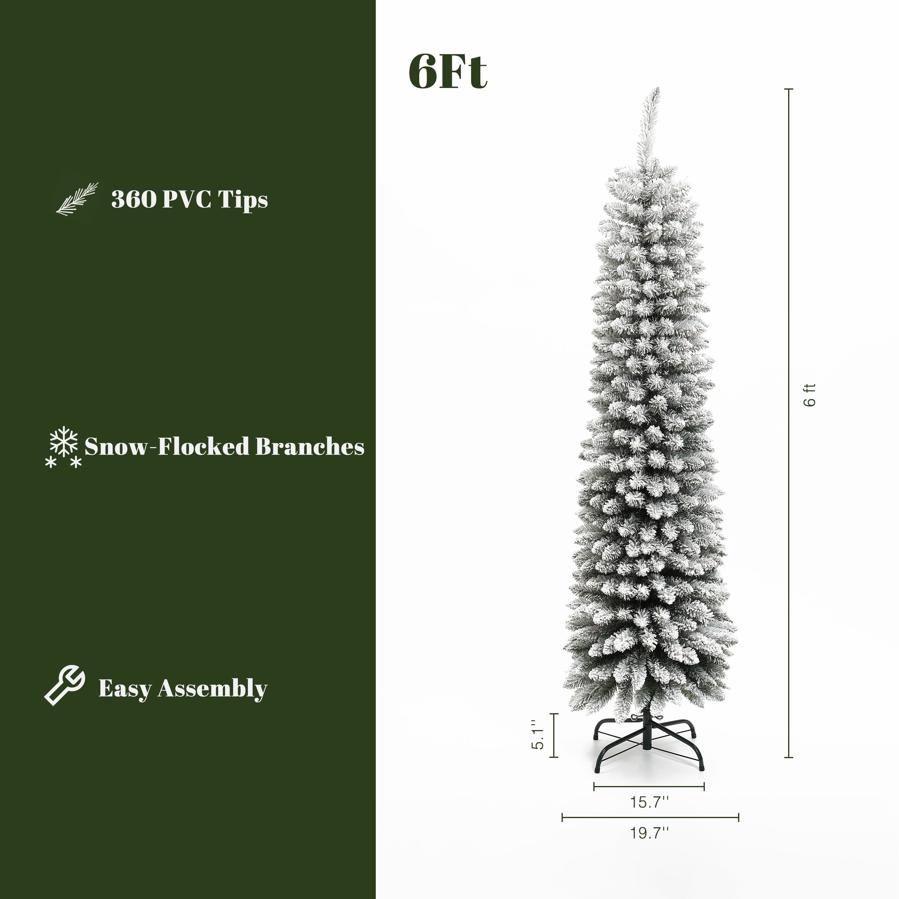 6Ft Pencil Slim Artificial Flocked Green Christmas Tree