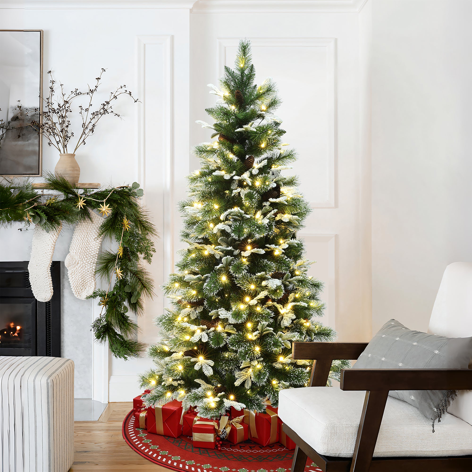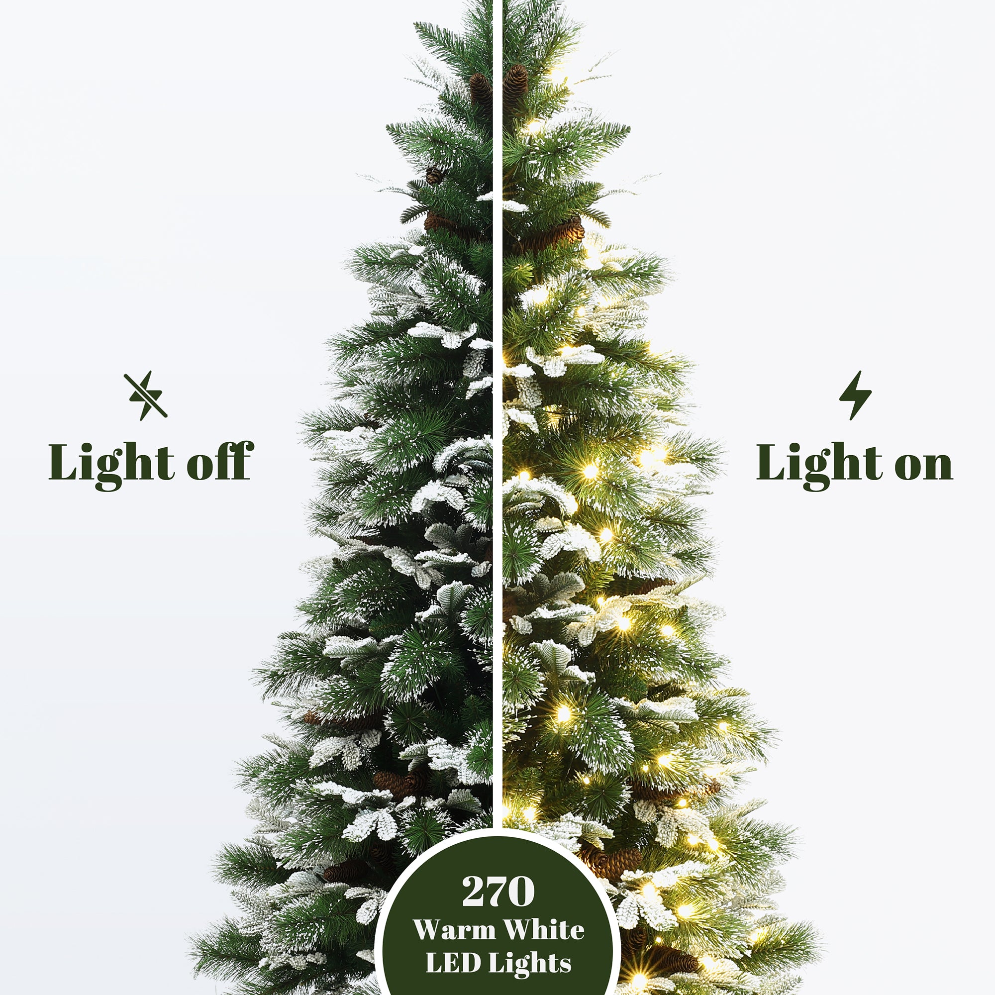 - Pre-Lit Warm Lights: Comes with 270 warm white LED lights evenly distributed for a soft, inviting glow.
