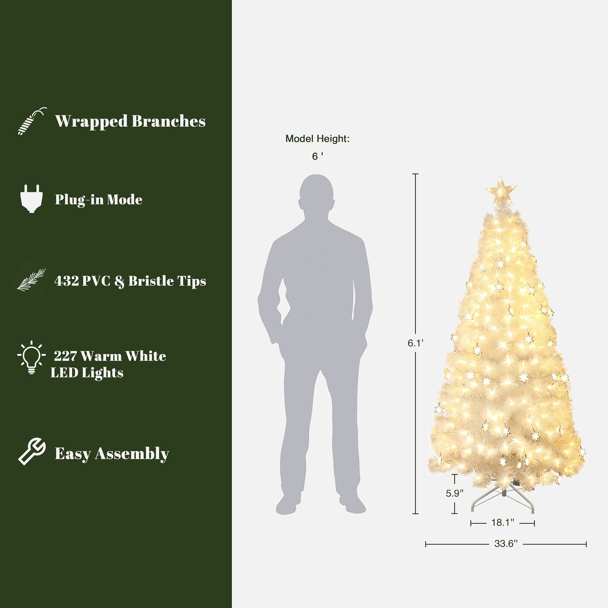 - Attractive Design: translucent snows blended with white conifer star top accents, exudes beautiful light.