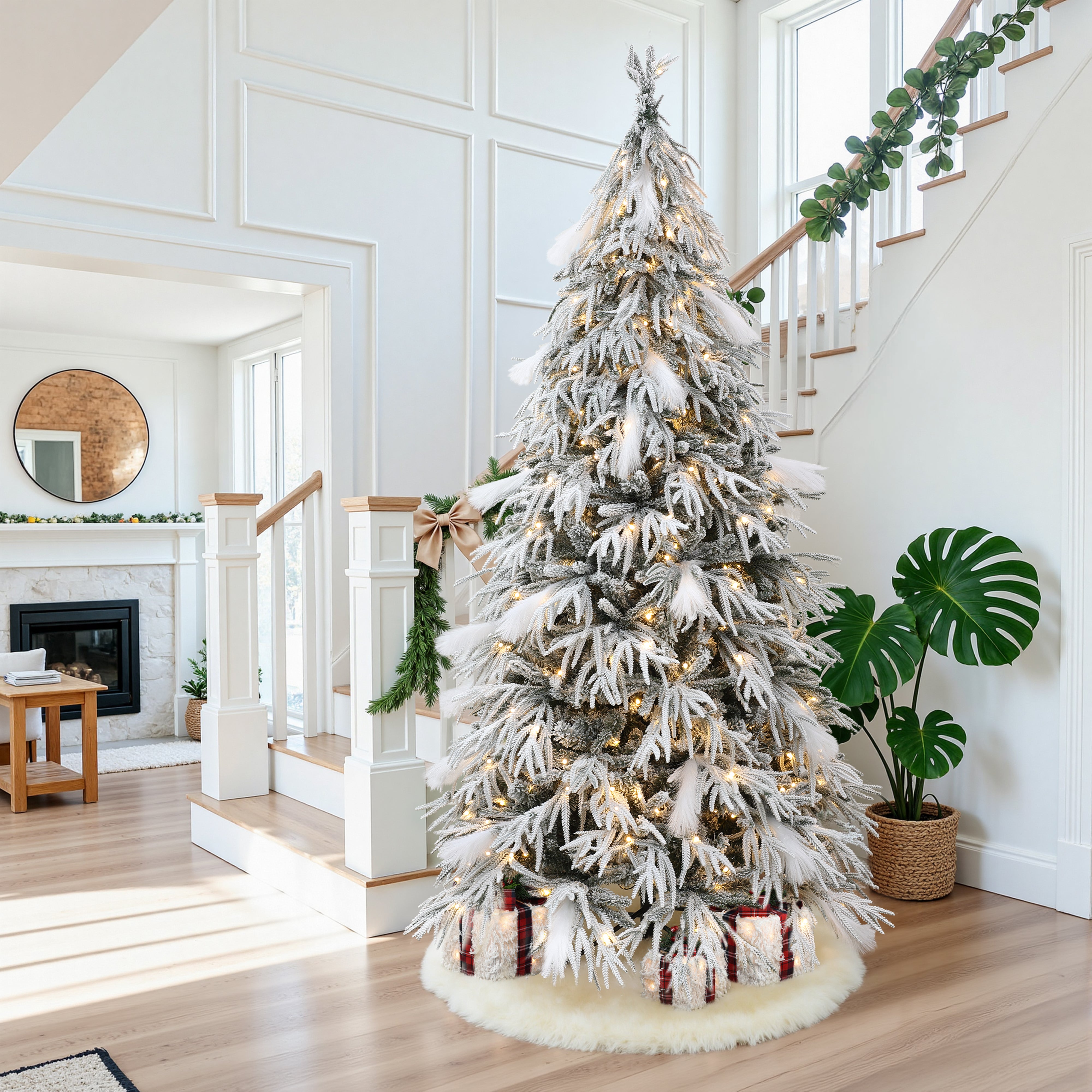 7.5Ft Pre-Lit Flocked Slender Artificial Christmas Tree