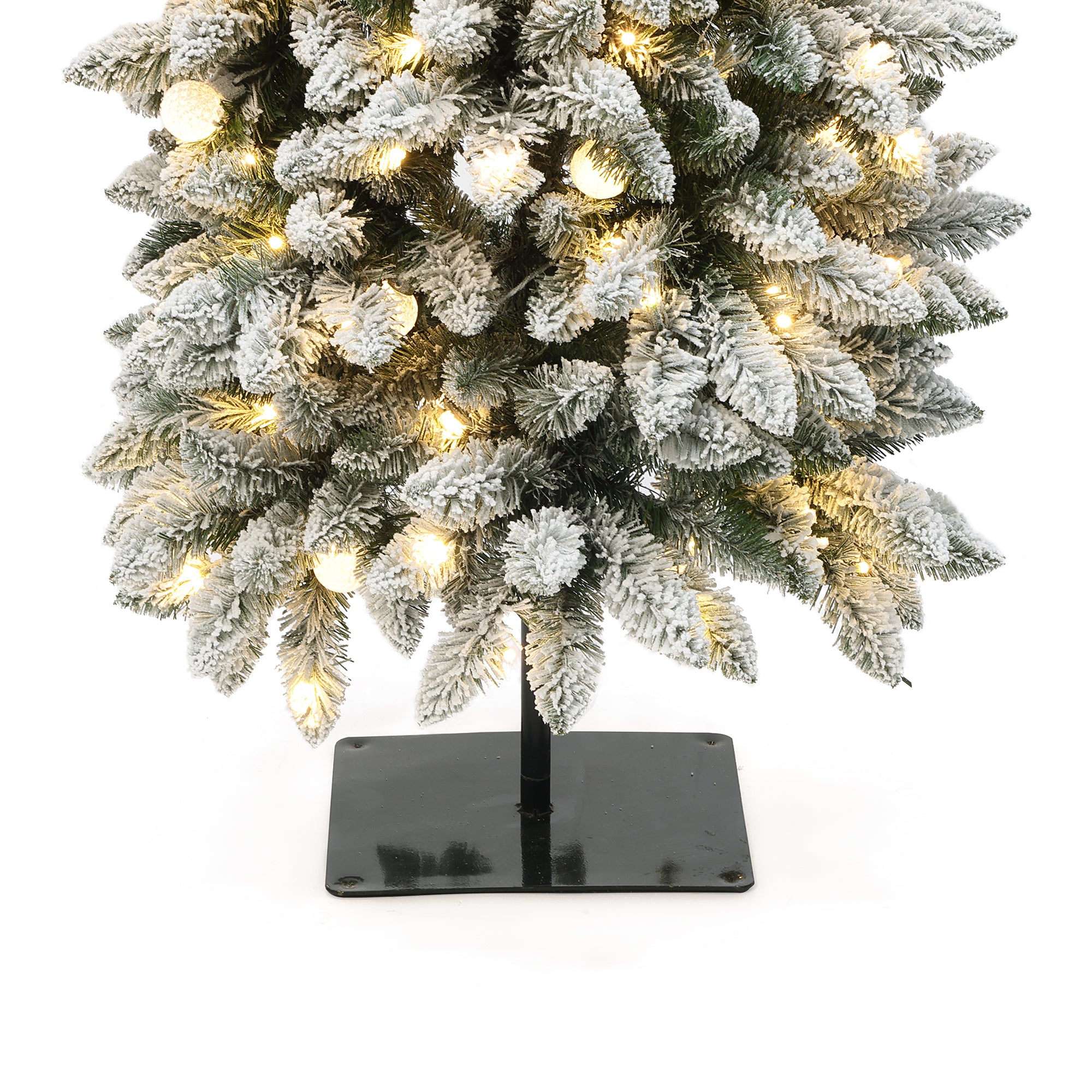 Pre-Lit Flocked Artificial Christmas Tree with Base, 7ft
