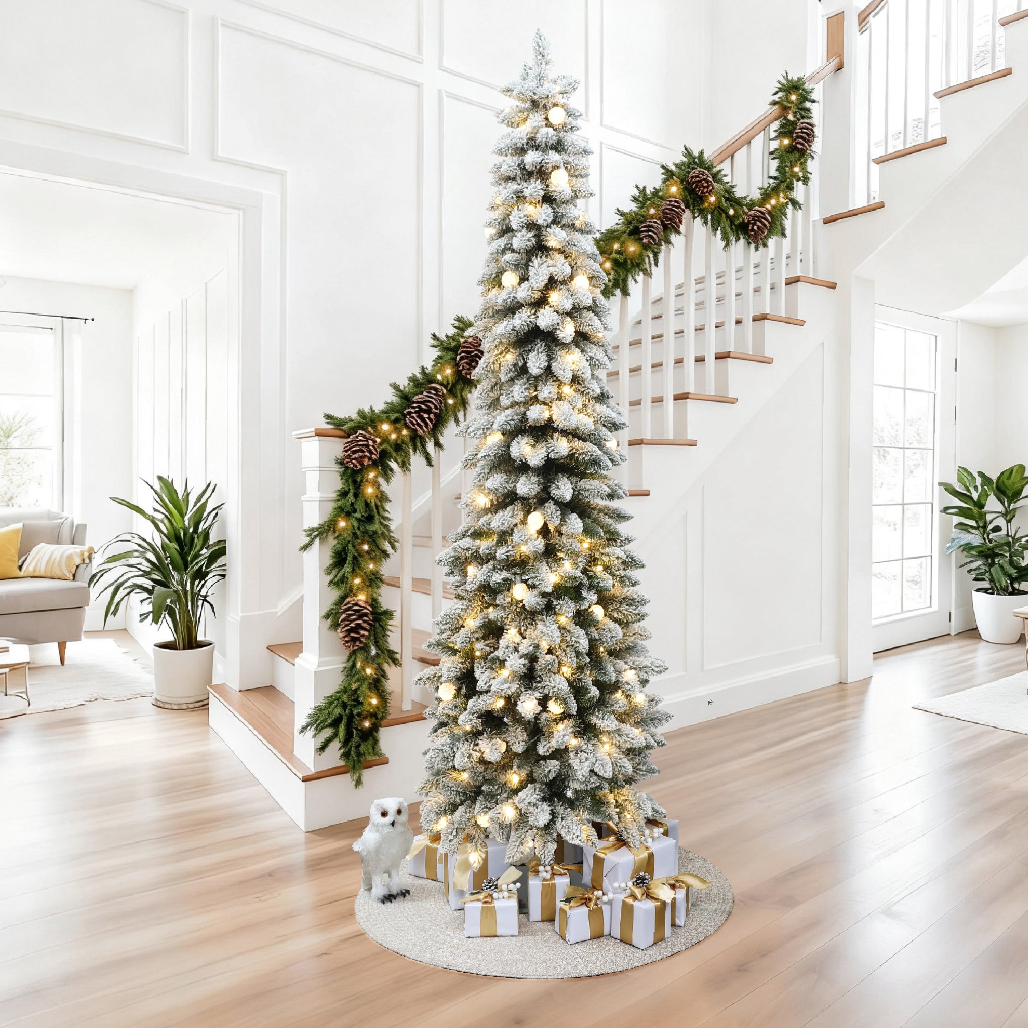 Create a cozy, wintry ambiance with Flocked Artificial Christmas Tree, combining the charm of freshly fallen snow with the practicality of a slim design.