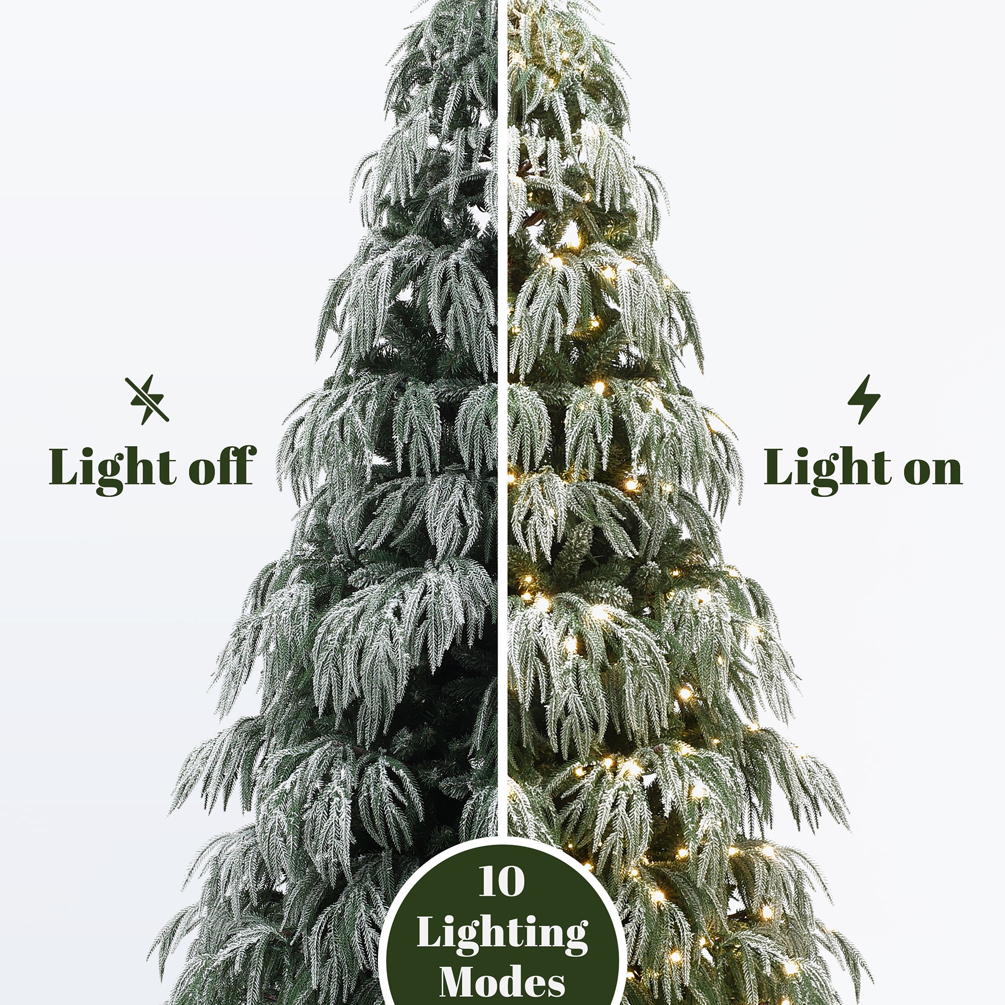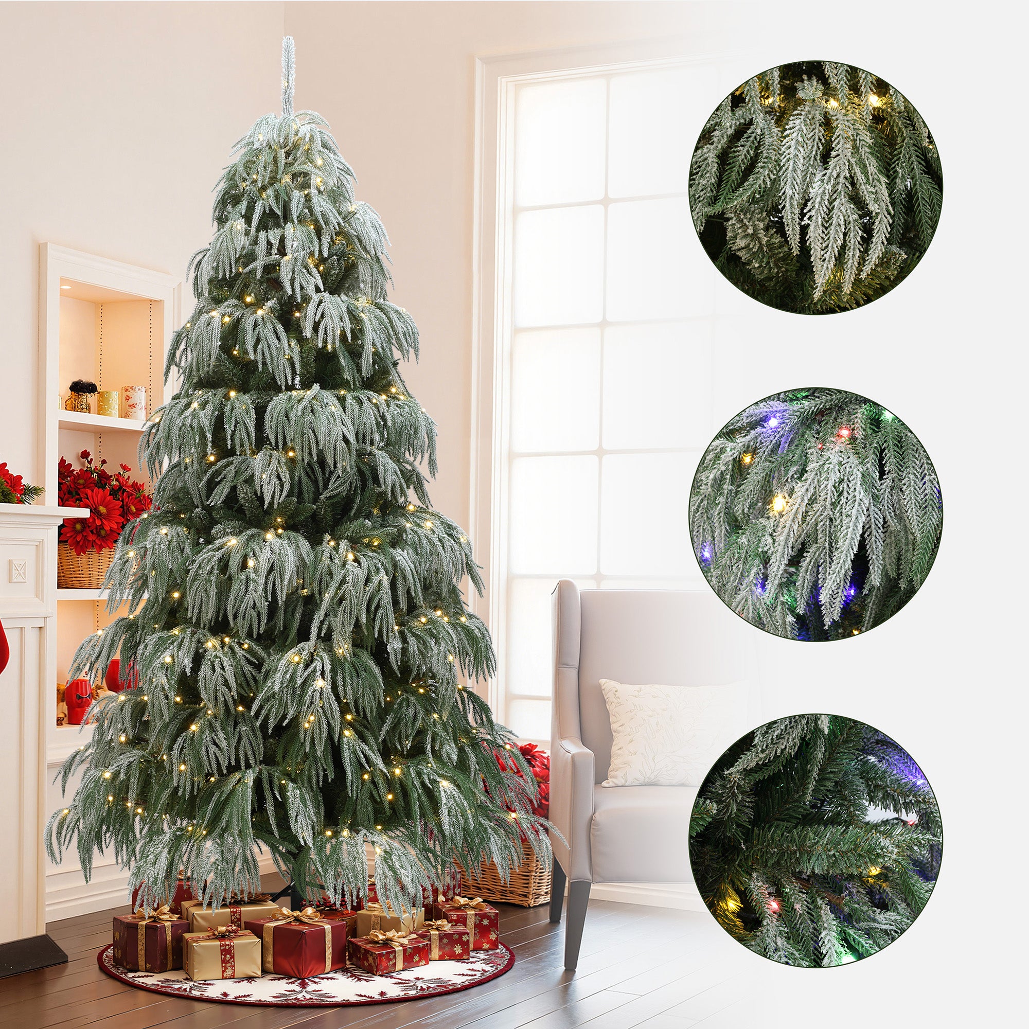 - Led Light Fixtures: 500 pre-installed warm white , multi-color LEDs with 10 light modes for a festive look.