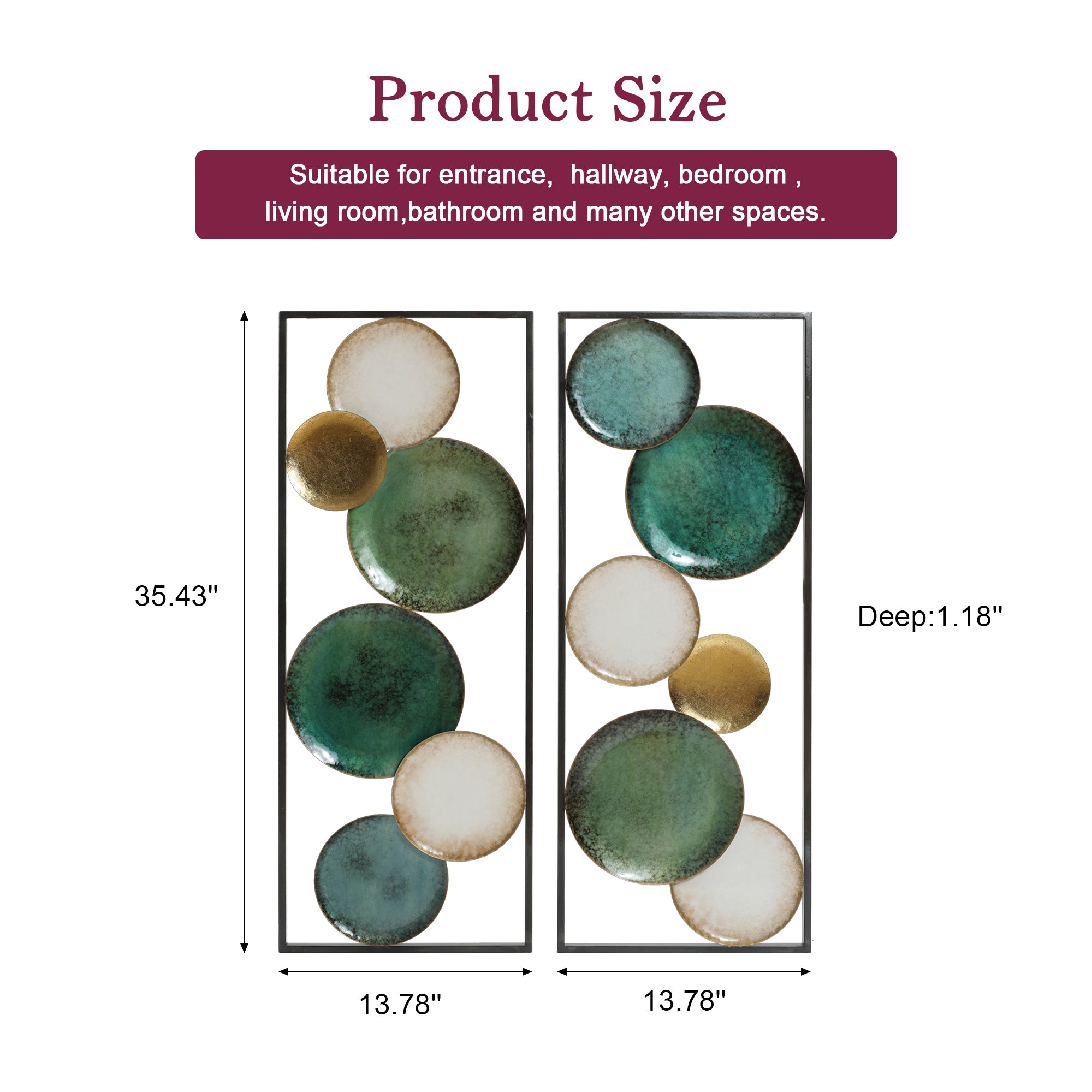 Beautiful modern design: the artistic abstract wall decoration set features two rectangular panels with overlapping circular discs