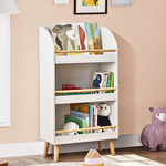White Kids Bookcase with Anti-Fall Bar, Toy Organizer