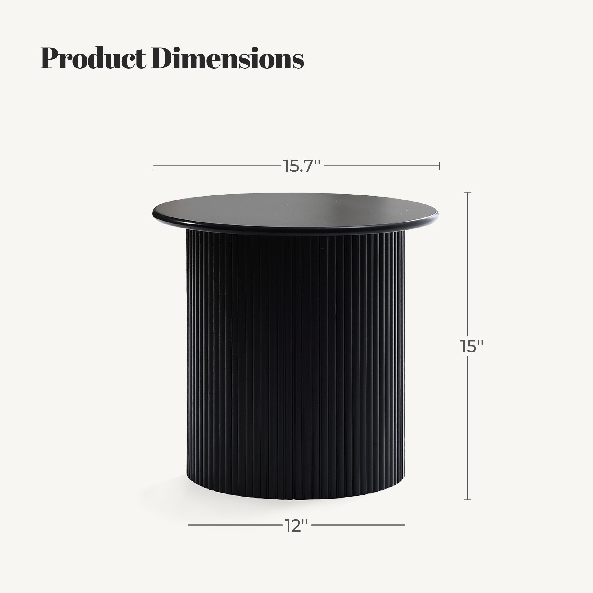 Compact Round Side Table, Black, 15'' H