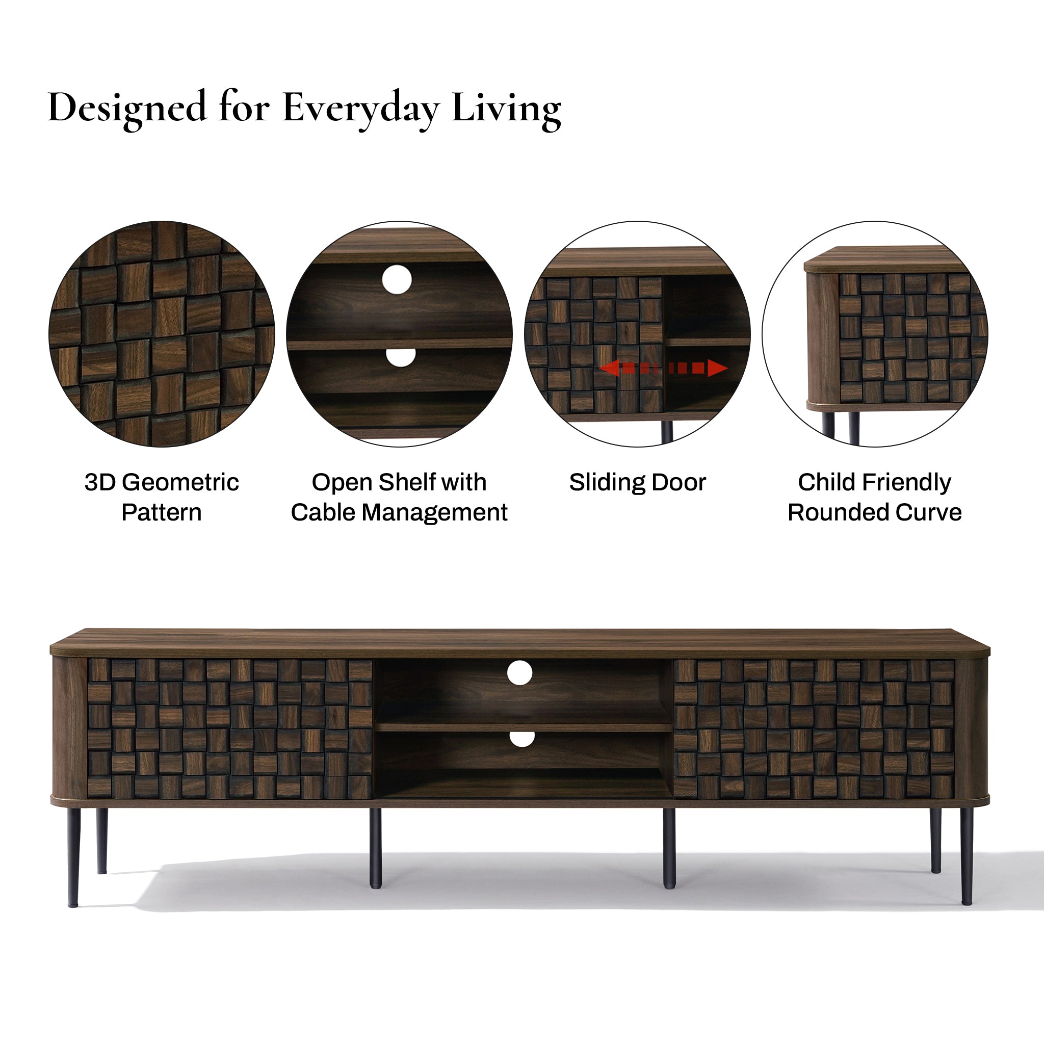 - Mixed Storage: Open center and concealed compartments suit living rooms or media spaces.