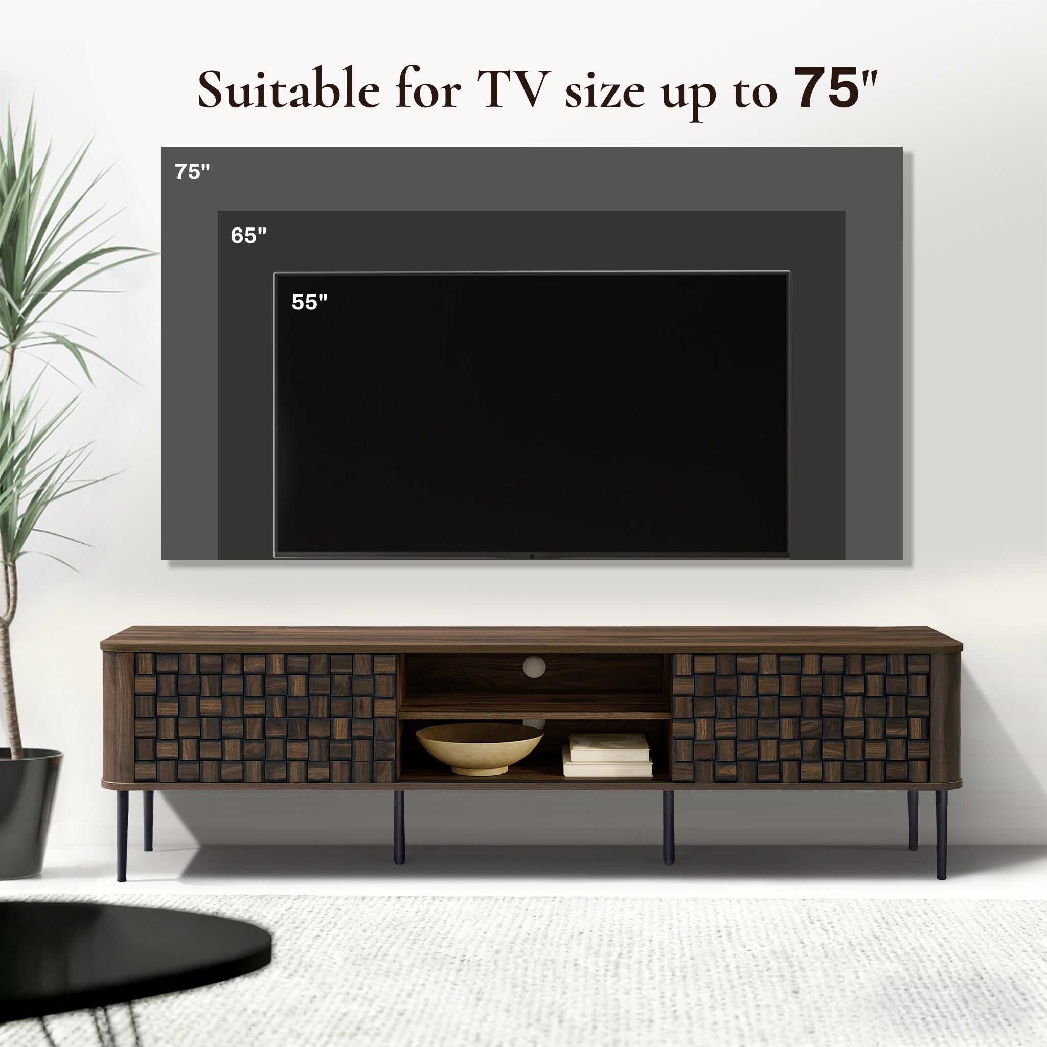 - Product Dimensions: Measures 70.9" W x 15.7" D x 19.7" H, supporting TVs up to 75".
