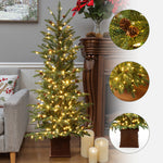 Pre-Lit Green Pine Christmas Tree with Square Pot,5ft