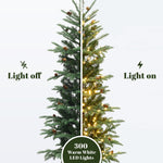 Crafted from PE+PVC materials, designed for quick ,easy setup with 3-section structure, branch-wrapped design.Pre-lit with 300 soft white LED lights, instantly transforms your home. A little fluffing takes to achieve a perfect shape, while the stable, elegant MgO base requires no extra decor.