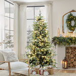 Pre-Lit Snowy Branches Fir Christmas Tree with Stand,6.5Ft