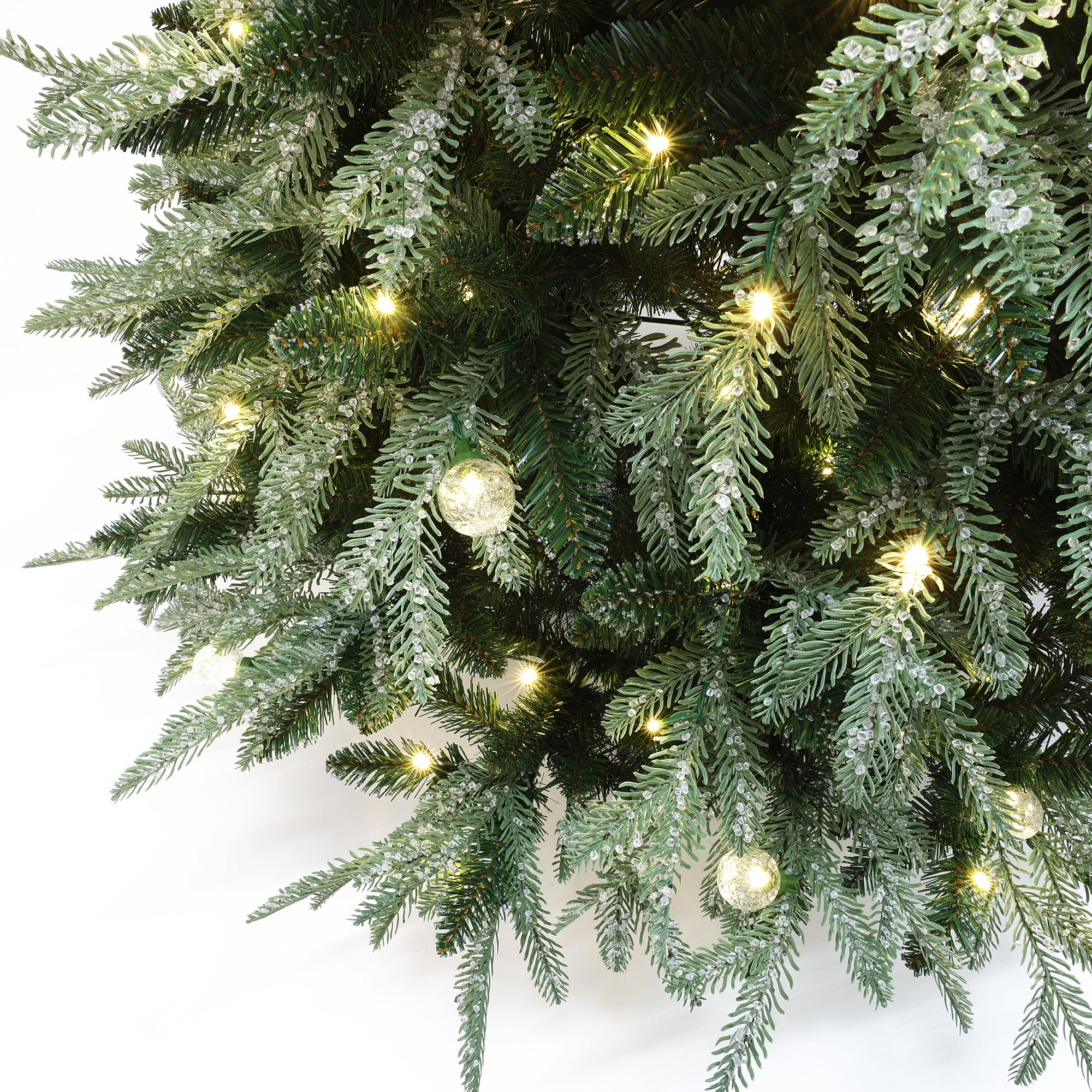 - Elegant Design: Green branches adorned with faux ice crystals, transparent balls, and layered accents.
