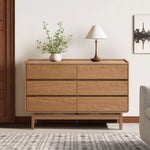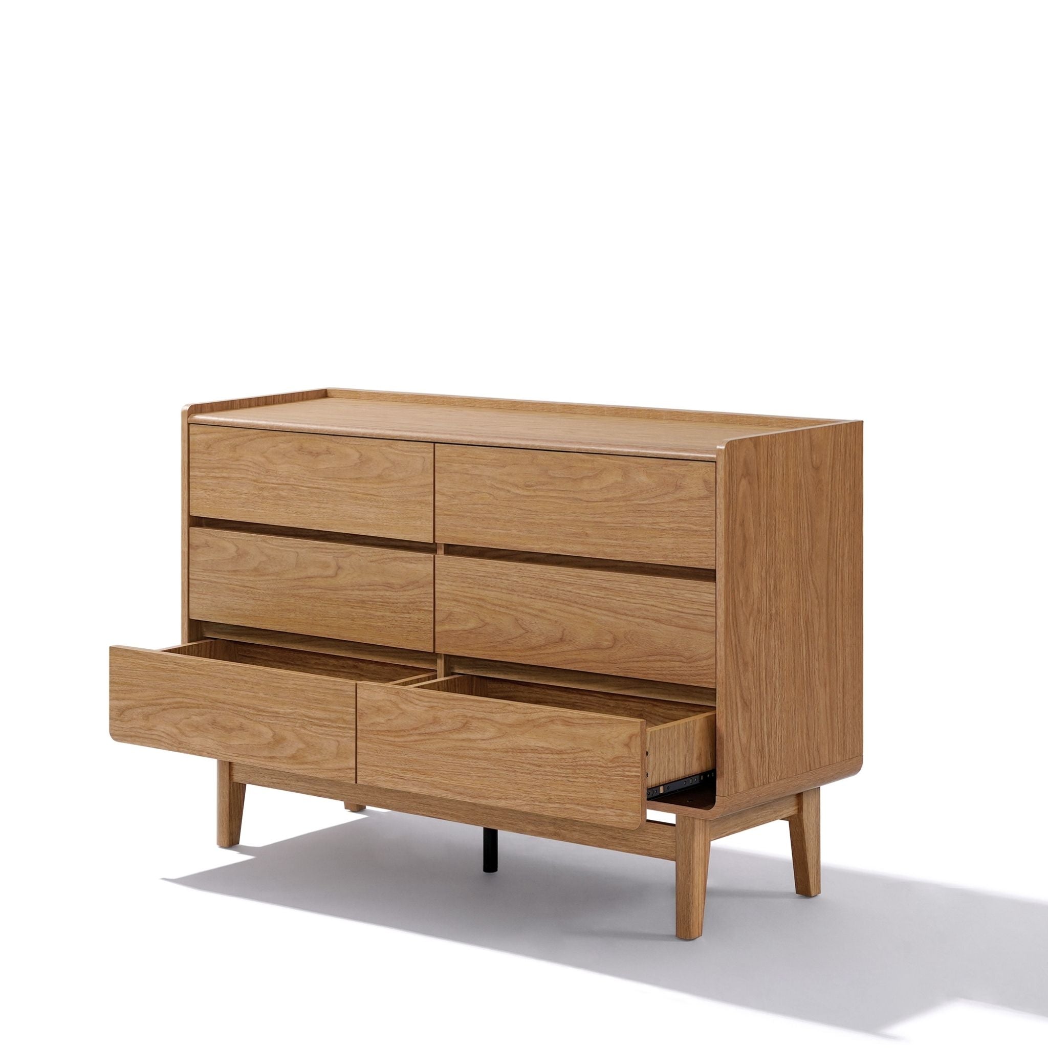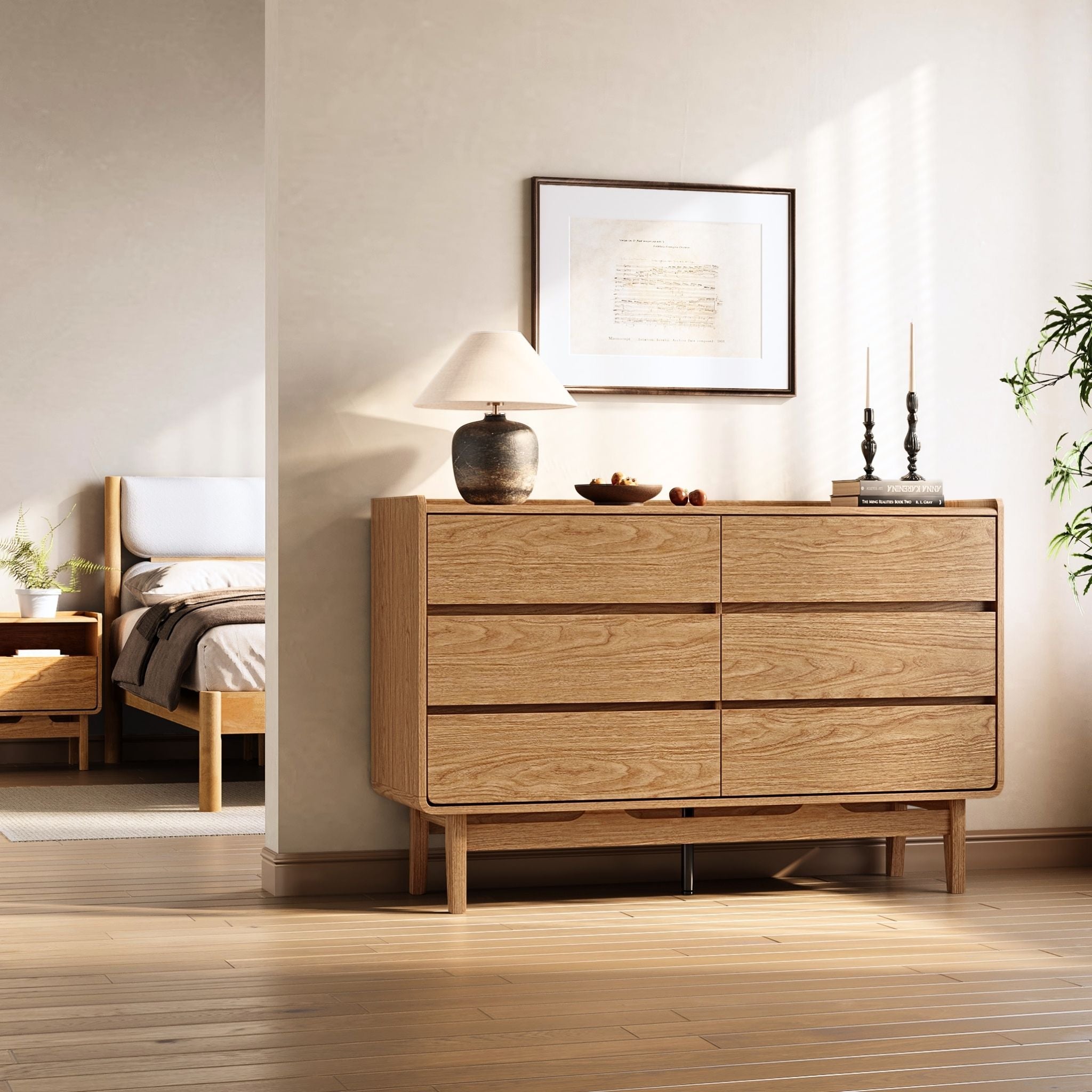 - Mid-Century Modern Style:6-drawer horizontal dresser embodies with walnut wood color, smooth, enhance, warm appearance.
