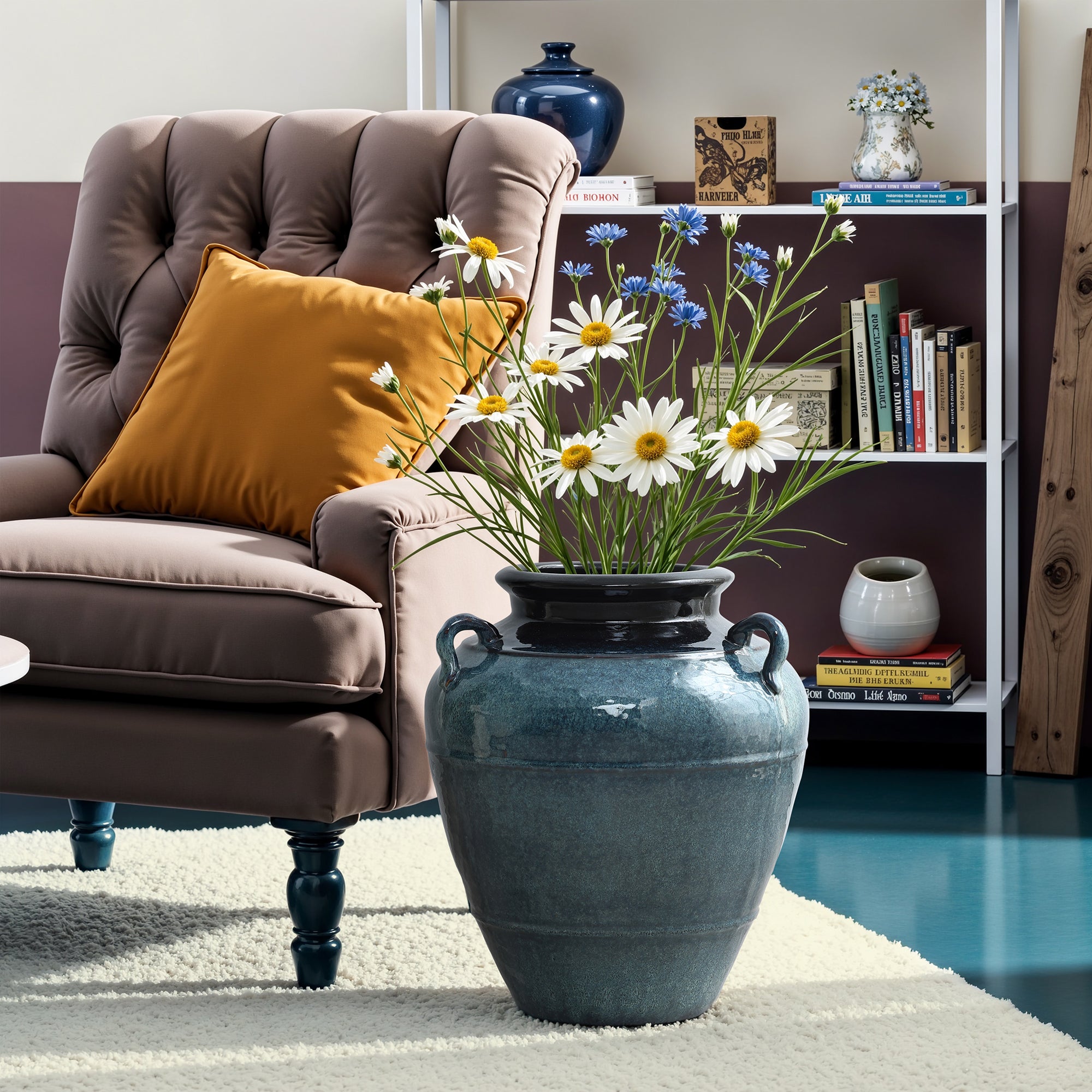 - Unique Design: With rare triple handles, hand-glazed in a rich ocean blue for a striking decorative look.