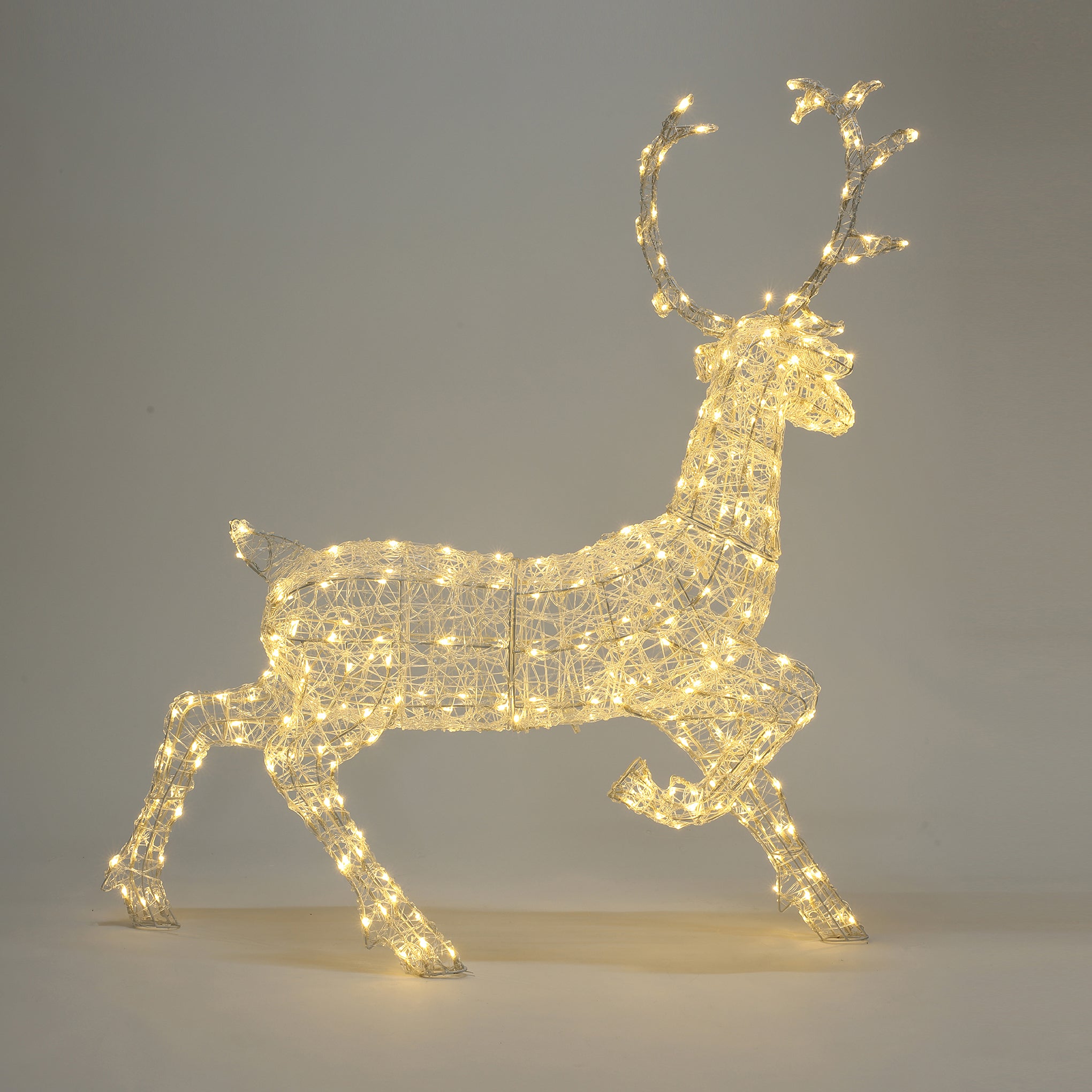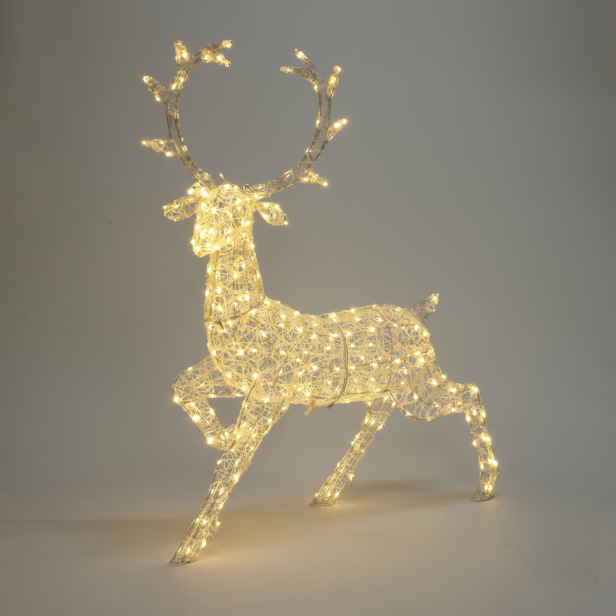 Create a magical winter scene with this Outdoor Deer Decoration, crafted with a shimmering wire frame and glowing warm white LED lights.