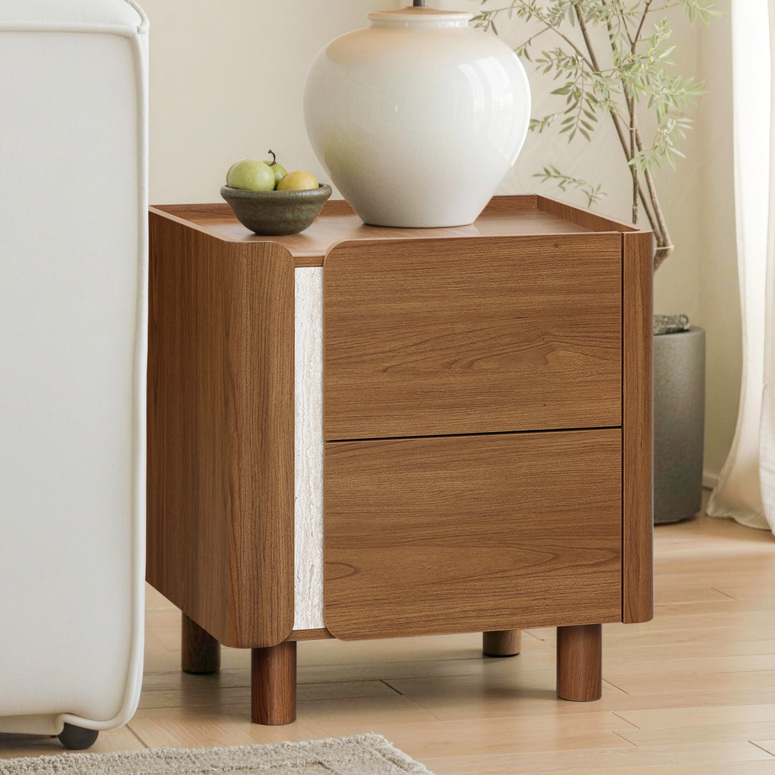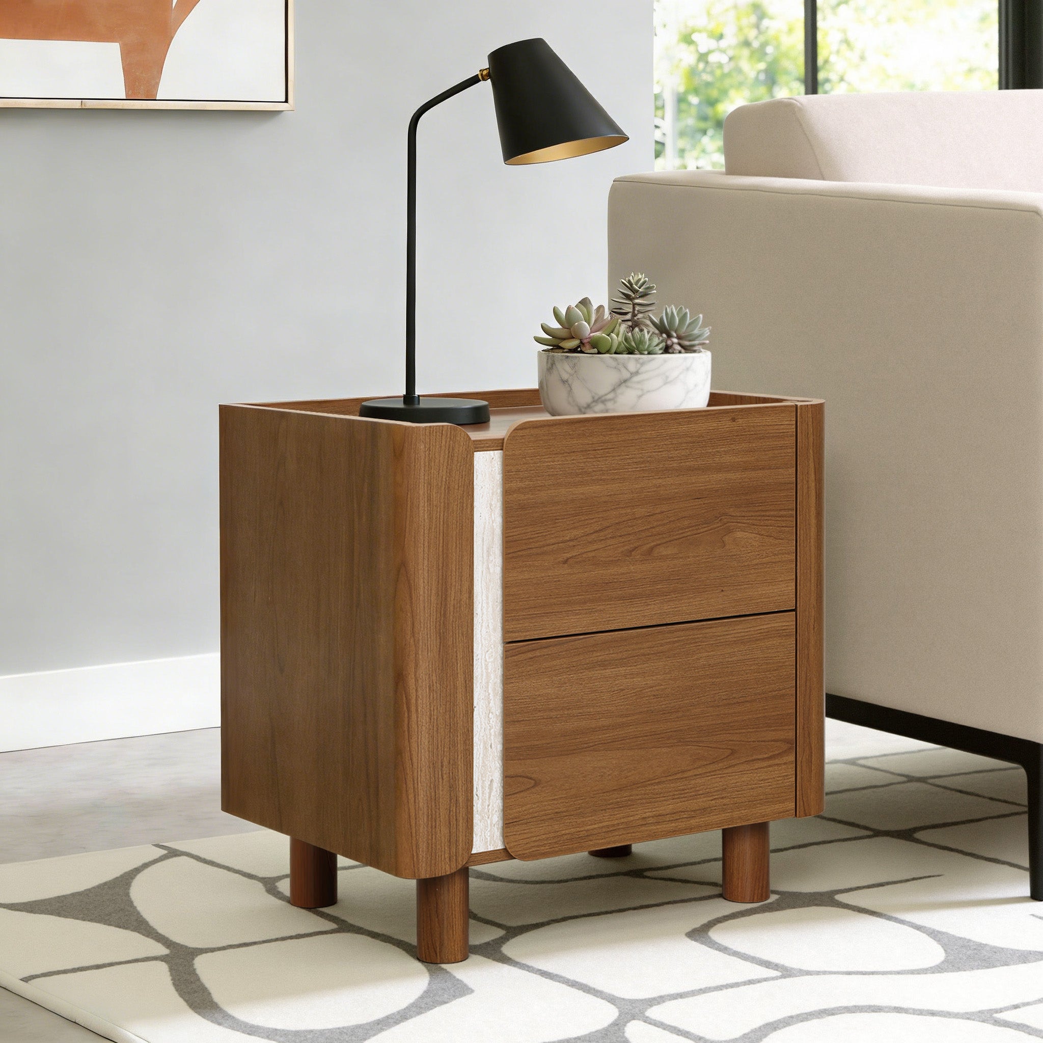 - Mid-Century Style Design: Mid century modern nightstand with walnut finish and rounded edges suits versatile interiors.