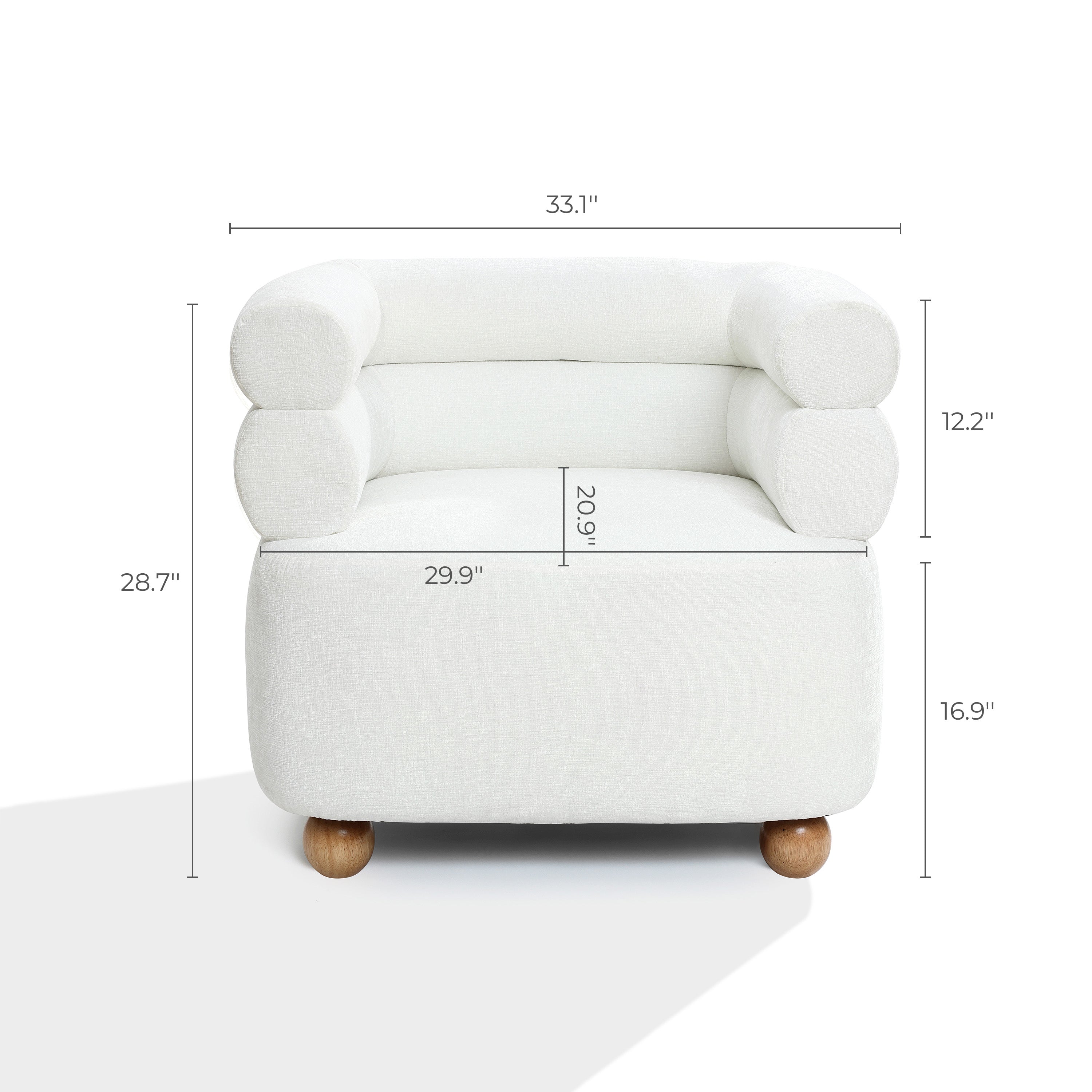 Tia ivory barrel accent chair with wood ball legs